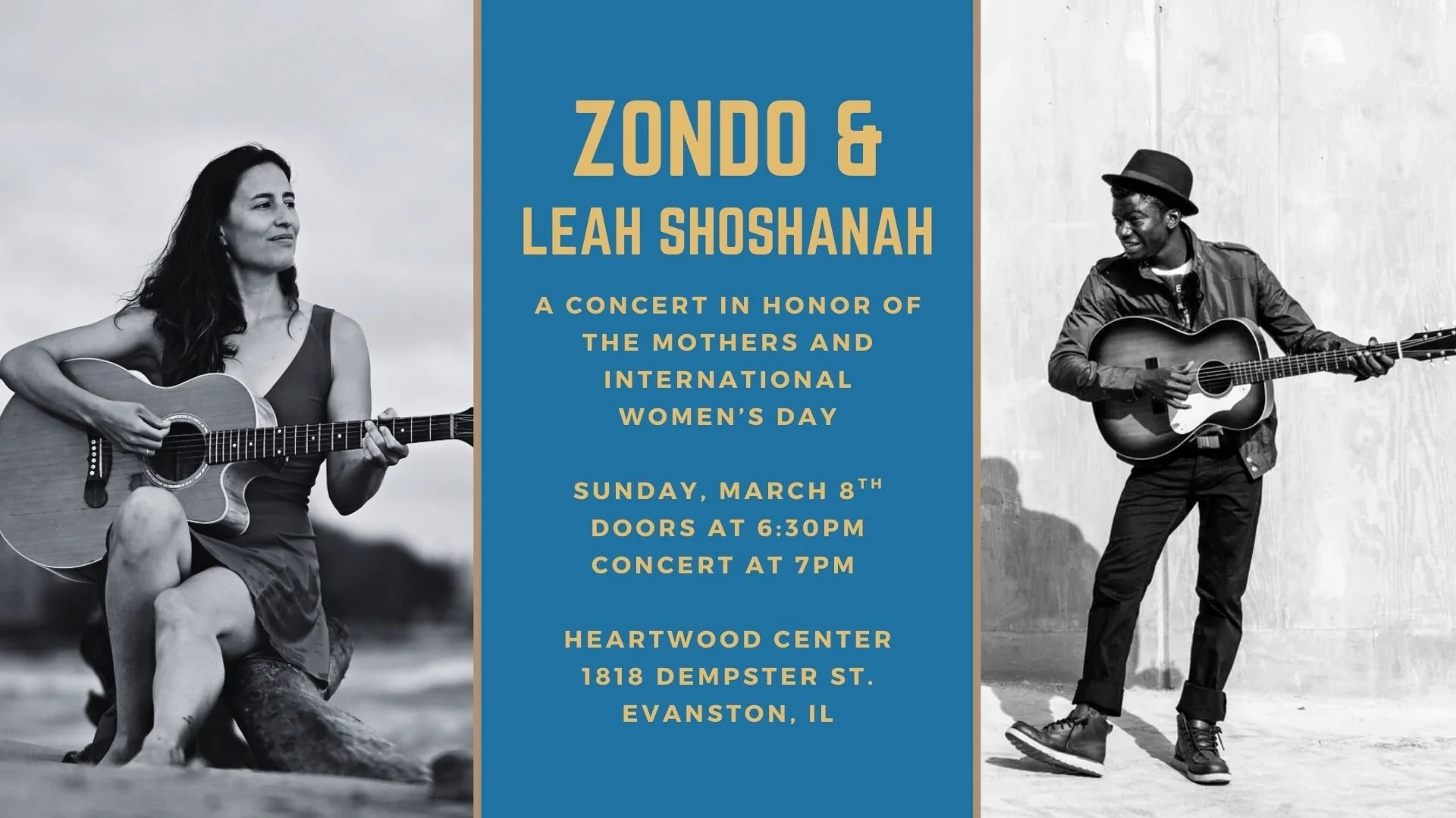 On March 8th, Join Zondo (aka Abraham Mellish) and Leah Shoshanah for an uplifting concert in honor of Mothers and International Women's Day.